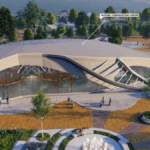 - The Lotus Business Park with overlapping floating volumes and planted terraces that blur inside and outside in commercial spaces.